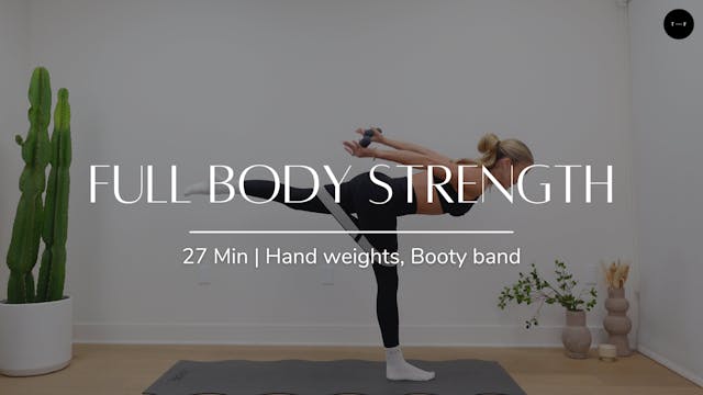 This full body class is a killer! Level up your Pilates using the optional hand weights and booty band to take our movements up a notch and really work on building strength. Let's get strong together!